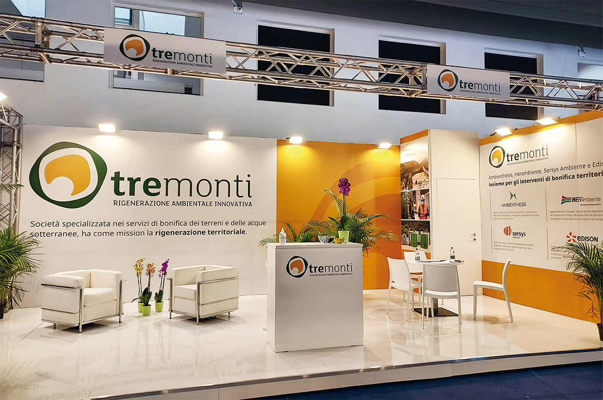 Logo design, identity chart and expo booth design for an NewCo specialized in land and groundwater remediation innovative services, born from the skills of four leading operators in environmental services, Ambienthesis, Herambiente (Hera Group), Sersys Ambiente and Edison.